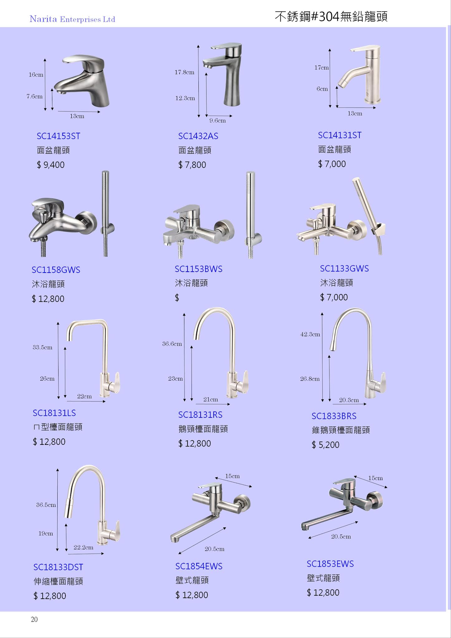 型號 :  SC18131RSBN 品名 :  檯面龍頭 (鵝頸/SUS#304/LF) 排價 :  $ 5,200 尺寸圖